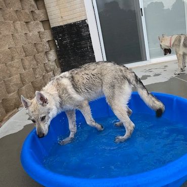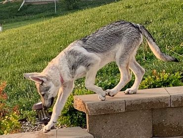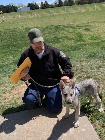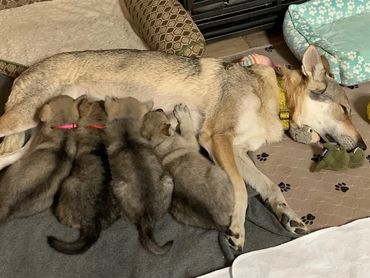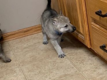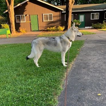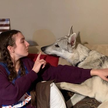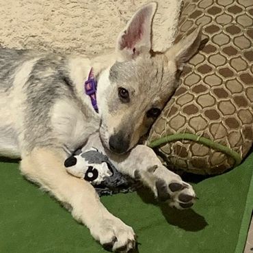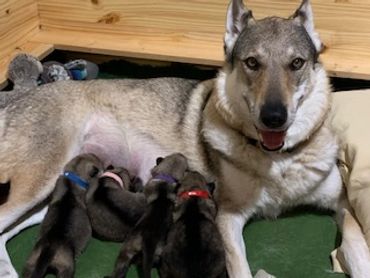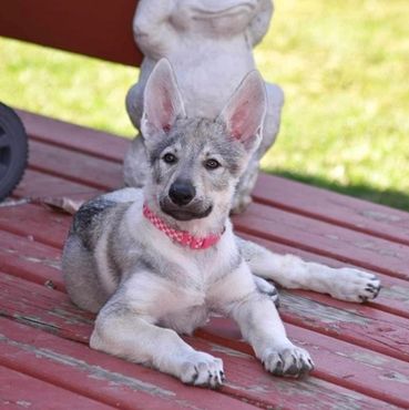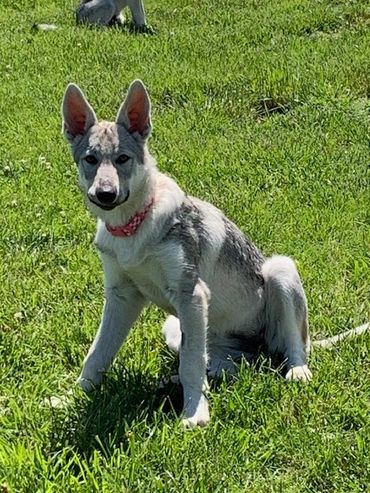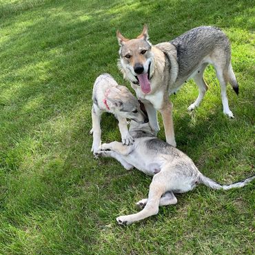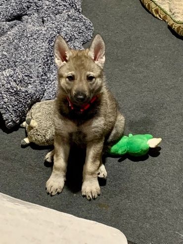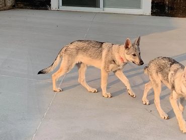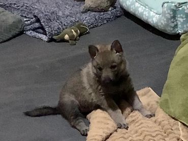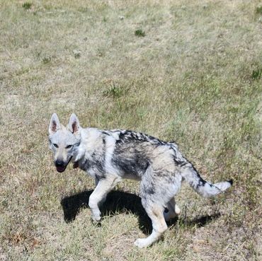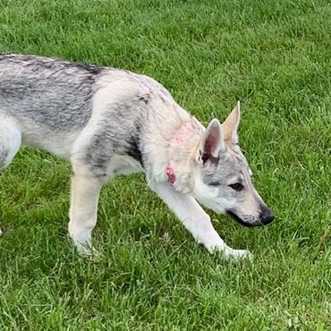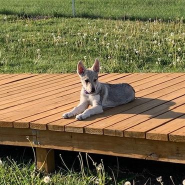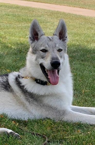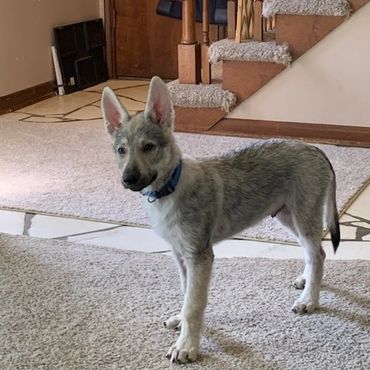 My husband Jerry and I fell in love with the breed when we were fortunate to foster a wonderful male Vlcak dog named "Mars". I had been searching for a dog for SAR work and found the intelligence and traits of the Czechoslovakian Vlcak were what I was looking for. I was able to locate a breeder in Germany, Sebastian & Iris Gruner, who were expecting a litter and found that the sire and dam were both trained in man-trailing. Freya was born at "z Karpatskej straze" Kennel on January 17, 2017. The last of five pups, Freya was a spunky, outgoing puppy who was not afraid of anything. I went to Germany in March of 2017 to pick Freya up and brought her home to start her training. Like her mother Freya is a tomboy, spunky and silly but can be serious when working. She is loving and protective of her family pack, extremely smart, loves to learn new things and wants to please.